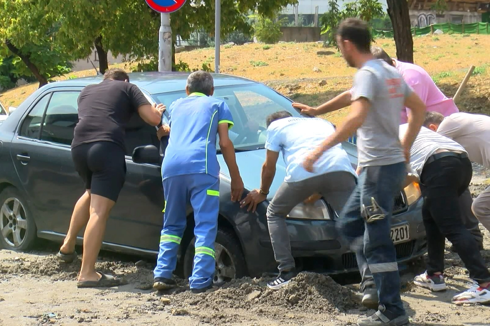 Davut Taşdemir, "Yukarıdan aşağıya yol yapıyorlar, yağmurun seli kumu aşağıya doğru getirdi. Bizde yağmur suyundan toprağı göremedik, sudur dedik ama çamurmuş. Yüksek toprak olduğu için araba patinaj yaptı, gitmedi" dedi.