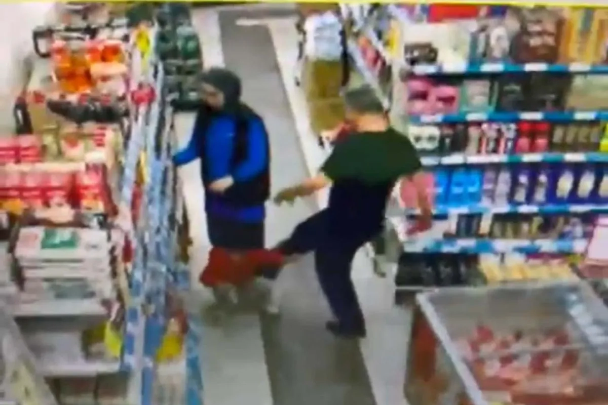 Eskişehir'de C.E., raflara doğru dönük olan küçük erkek çocuğuna bilinmeyen sebeple tekme attı.