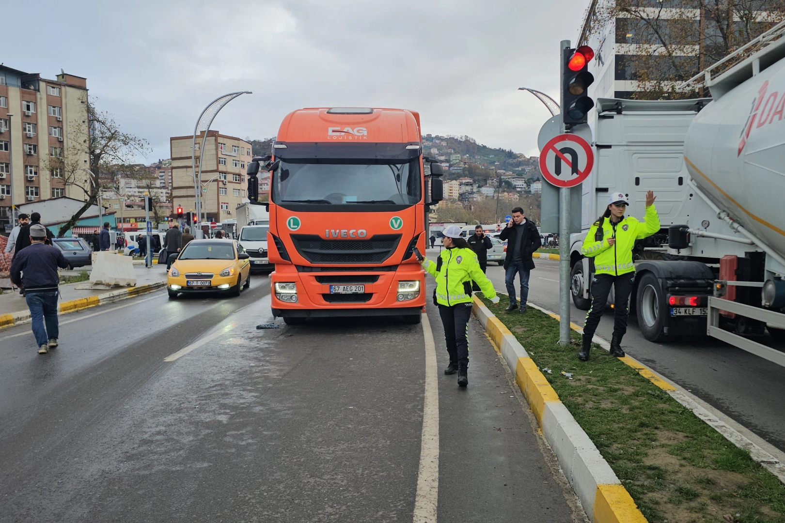 Kaza nedeniyle trafik akışı bir süre tek şeritten kontrollü olarak sağlandı. TIR'ın yoldan çekilmesiyle ulaşım normale döndü.