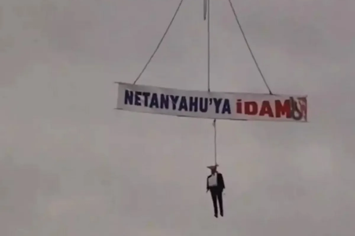 Gazze’de yaşanan insani krize yönelik tepkilerin büyümesiyle, Trabzon'da vatandaşlar İsrail Başbakanı Binyamin Netanyahu’nun maketini vinçle asarak idam edermişçesine sergiledi.