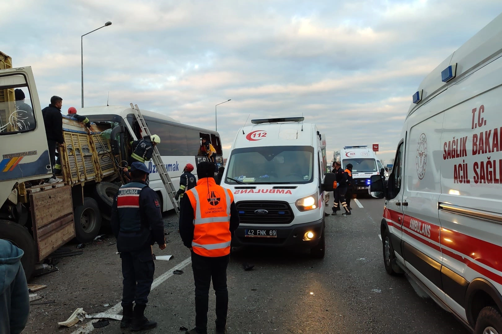 Kaza, saat 08.00 sıralarında, Konya-Afyonkarahisar kara yolu Ilgın ilçesi yakınlarında meydana geldi. İçerisinde 35 yolcunun bulunduğu Mehmet Bozkuş (47) yönetimindeki 42 TC 903 plakalı yolcu otobüsü, yol kenarında park halinde olan sürücüsünün kimliği belirlenemeyen 42 APA 376 kamyona arkadan çarptı. Çarpmanın etkisiyle kamyon da önündeki park halinde olan 42 BAG 845 TIR'a çarptı. İhbar üzerine kaza yerine jandarma, polis, sağlık, itfaiye ve AFAD ekipleri sevk edildi. Kazada, otobüs şoförü Mehmet Bozkuş ile yolculardan Aliye Günay (56) ve Derin Riyal Kamiloğlu hayatını kaybetti, kamyon şoförünün de aralarında bulunduğu 33 kişi yaralandı. Yaralılar, Ilgın ve Konya’daki hastanelere kaldırıldı.