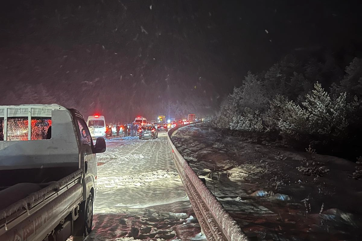 Kastamonu’da akşam saatlerinde etkili olan yoğun kar yağışı ulaşımı olumsuz etkiledi. Kastamonu-İnebolu kara yolu Oyrak mevkisinde kar yağışı ve buzlanma nedeniyle bazı araçlar yolda kaldı. Yolun iki şeridinde de TIR ve kamyonların ilerleyememesi nedeniyle uzun araç kuyruğu oluştu. Hazırlıksız yakalanan sürücüler, araçlarında beklemek zorunda kaldı. Karayolları ekipleri, yolda kalan araçların kaldırılması ve ulaşımın yeniden sağlanabilmesi için bölgede çalışmalarını aralıksız sürdürüyor.