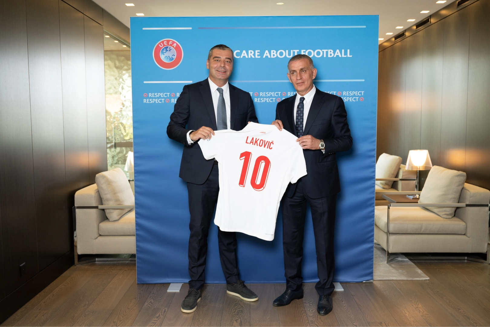 Görüşmenin sonunda, TFF Başkanı Hacıosmanoğlu, UEFA Başkanı Ceferin, UEFA Üye Federasyonlar Direktörü Lakovic ve Kadir Kardaş’a üzerinde isimlerinin yazılı olduğu A Milli Takım formaları hediye etti. Ceferin ise Hacıosmanoğlu'na ziyaretin anısına özel bir flama takdim etti.