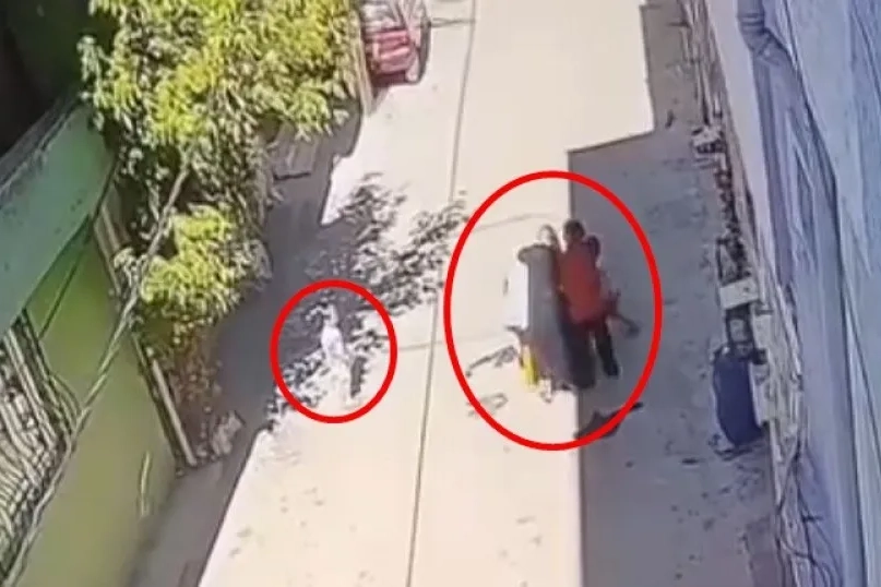 Kadınlar, kucağındaki çocuğu yere bırakan anneyi aralarına alıp darbetti.