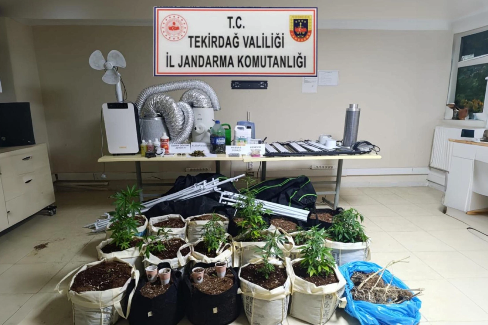 Tekirdağ İl Jandarma Komutanlığı ekipleri yaptıkları çalışmada, uyuşturucu madde imal ve ticareti yaptığını tespit ettiği T.A.'yı takibe aldı. Takip ardından Jandarma Suç Araştırma Timi (JASAT) ve Çorlu Yenice Karakol Komutanlığı ekipleri, T.A.'nın evine dedektör köpeğin de katılımıyla operasyon düzenledi. Evde yapılan aramada, uyuşturucu yetiştirmek için kurulan sistem ile 15 kök kenevir, 9 kök hasat edilmiş kenevir, 500 gram kubar esrar, 1 gram kenevir tohumu ve 1 hassas terazi, esrar öğütücü aparat, iklimlendirme çadırı, 2 adet fan, vantilatör, 2 metre havalandırma borusu, havalandırma motoru, termometre, 2 led aydınlatma sistemi, 3 litre sıvı bitki besleyici, 5 litre pH düşürücü, zamanlayıcı ve cep telefonu ele geçirildi.