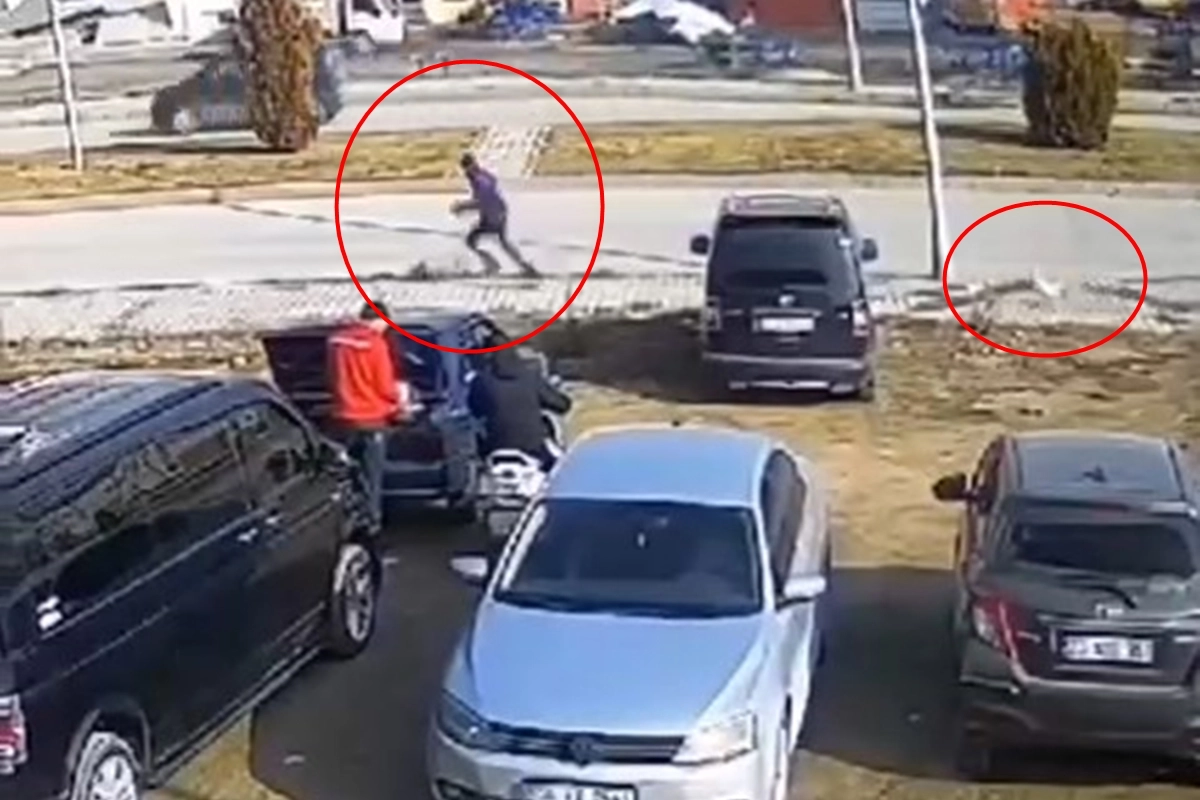 Olay, Sanayi Mahallesi'nde meydana geldi. Doğal gaz sayacı okumak için bir iş yerine gelen görevli, kapının önünde dolaşan horozun saldırısına uğradı. Bunun üzerine görevli koşmaya başladı. Ancak horoz, görevlinin peşini bırakmadı. Görevli, yolun karşısına geçerek horozdan kurtuldu. O anlar ise güvenlik kameralarına yansıdı.