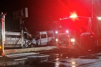 kamyonet ile minibüsün kafa kafaya çarpışması sonucu 2'si çocuk 11 kişi yaralanırken, kaza sonrası alev alan araçlardaki yangın ise itfaiye ekiplerince söndürüldü.