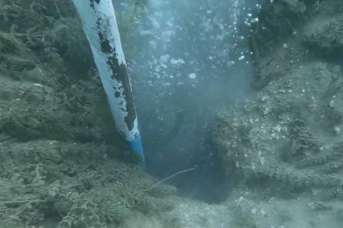 Dalgıç Bünyamin Erdoğmuş da yaklaşık 5 metre derinlikte 50 santimetre çapında oyuk olduğunu kaydetti.