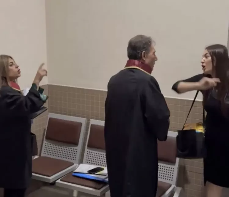 Davayı takip etmeye gelenler sanık avukatlarına tepki gösterirken, adliye koridorlarında da iki tarafın avukatları arasında sesler yükseldi.