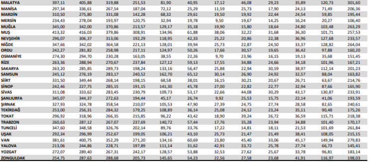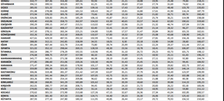 BOTAŞ İLLERE GÖRE AYLARA GÖRE TÜKETİM LİMİTLERİ