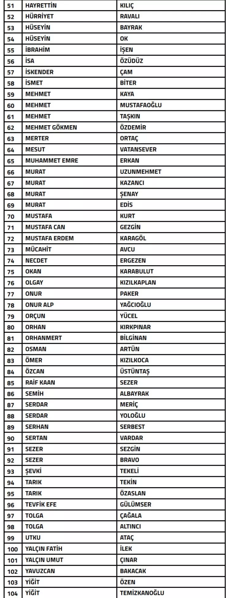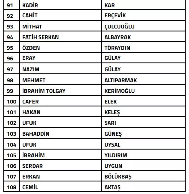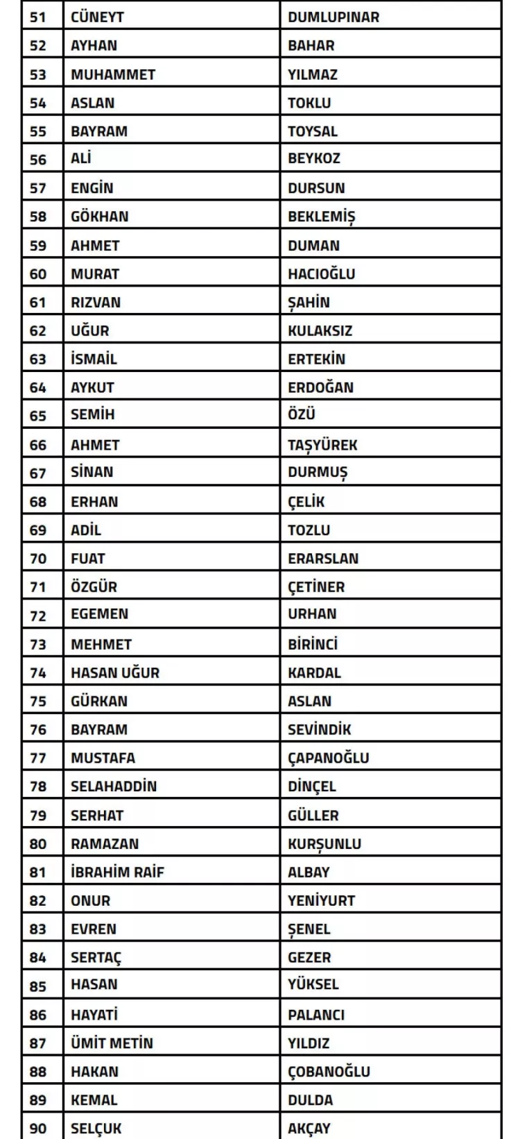 Sevk edilen isimler arasında; Gökhan Ünal, Hakan Keleş, Mehmet Altıparmak, Taner Gülleri, Murat Hacıoğlu ve Mustafa Alper Avcı gibi teknik adamlar bulunuyor.