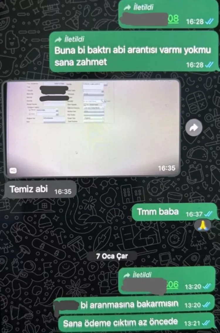 Soruşturma dosyasına giren WhatsApp yazışmalarında, örgüt üyelerinin kamu görevlilerinden "arama kaydı" başta olmak üzere çeşitli gizli bilgileri talep ettiği görüldü.