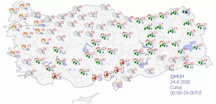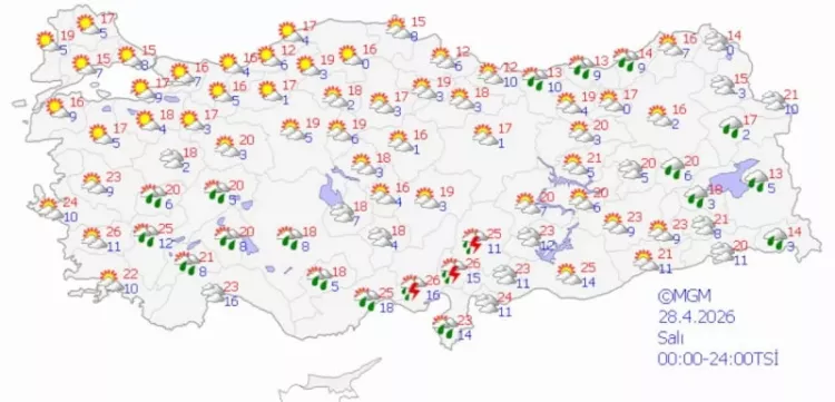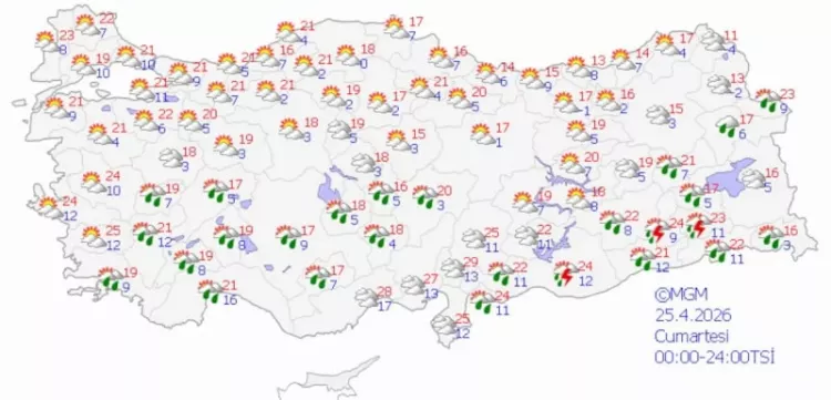 MGM'nin son verilerine göre Türkiye'nin batı ve güney kesimleri daha stabil ve güneşli bir hava alırken, doğu ve iç bölgelerde gök gürültülü sağanak yağışlar etkili olacak. Sıcaklıkların ise ülke genelinde mevsim normallerinin biraz altında kalması bekleniyor.