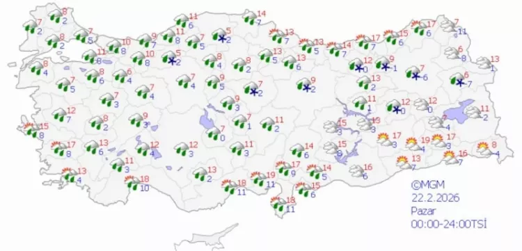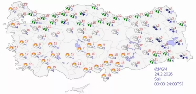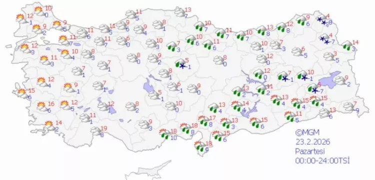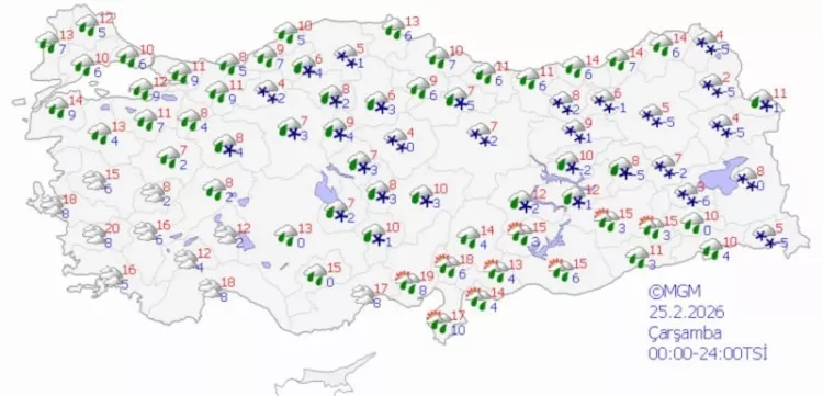 Marmara, Ege ve Akdeniz'de parçalı bulutlu ve daha ılıman, İç Anadolu ve Karadeniz'de 4-12 derece civarında ve Doğu Anadolu'da 0-8 derece bandında sıcaklıklar öngörülüyor.