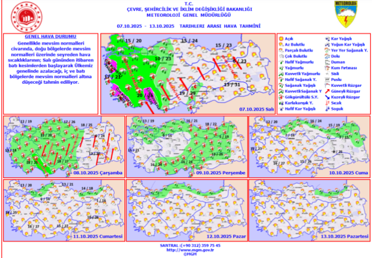 Türkiye, serin ve yağışlı havanın etkisi altına giriyor. Sıcaklıklar batı kesimlerden başlayarak ülke genelinde hissedilir derecede düşecek.