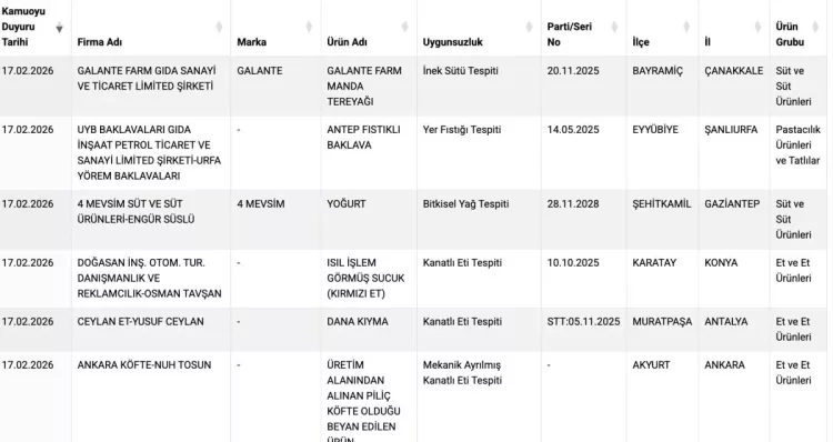 Tarım ve Orman Bakanlığı, gıda ürünlerinde taklit ve tağşiş yapan markaları 'guvenilirgida.tarimorman.gov.tr' internet adresinden açıklamaya devam ediyor.