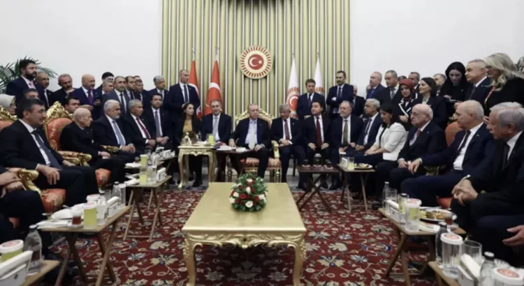 Resepsiyona Cumhurbaşkanı Recep Tayyip Erdoğan da katılırken MHP Genel Başkanı Devlet Bahçeli, DEM Parti Eş Genel Başkanları Tuncer Bakırhan ve Tülay Hatimoğulları Oruç, DEVA Partisi Genel Başkanı Ali Babacan, Gelecek Partisi Genel Başkanı Ahmet Davutoğlu, Büyük Birlik Partisi Genel Başkanı Mustafa Destici, HÜDA PAR Genel Başkanı Zekeriya Yapıcıoğlu ve milletvekilleri ile sohbet etti.