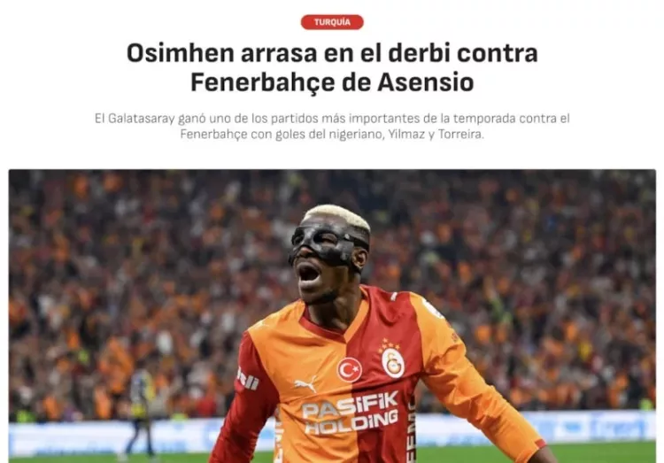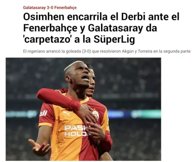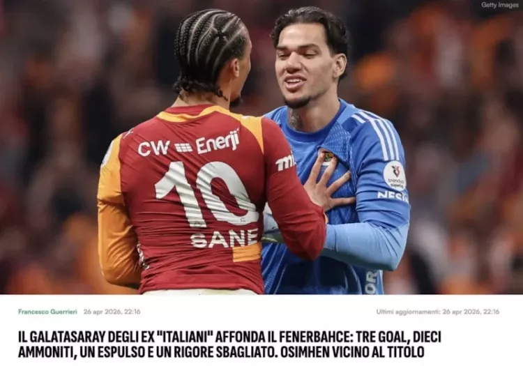 "Eski İtalyan oyuncularını kadrosunda bulunduran Galatasaray, Fenerbahçe'yi mağlup etti: üç gol, on sarı kart, bir kırmızı kart ve bir penaltı kaçırma. Osimhen şampiyonluğa yaklaştı."