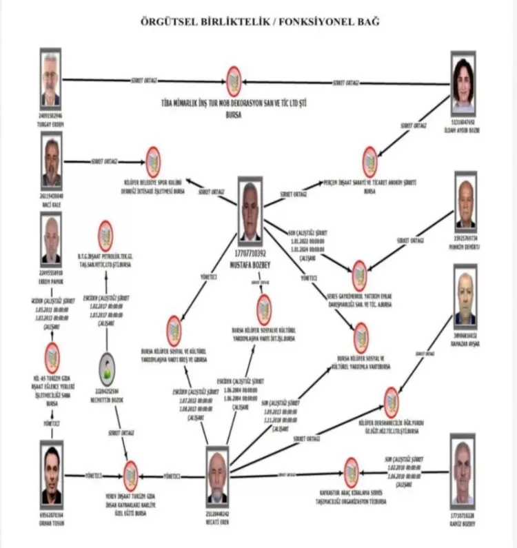Şüphelilerin emniyet birimlerinde işlemleri devam ederken Bursa Cumhuriyet Başsavcılığınca, Mustafa Bozbey Suç Örgütü'ne karşı yürütülen soruşturmanın örgüt şeması ortaya çıktı.
