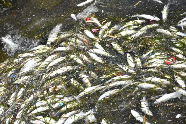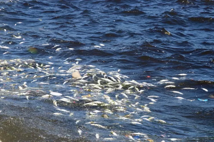 Yüz binlerce balık ölü olarak kıyaya vururken, kentteki ağır koku da kendisini hissettiriyor.