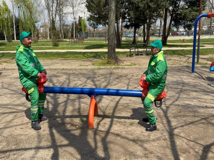 Osmangazi Belediyesi Temizlik İşleri Müdürlüğü’nde görevli Enes Akbulut ile Gülamir Taş (48), görev sahalarındaki Yunuseli Mahallesi'nde çocuk oyun parkını temizledikten sonra mola verdi. Dinlenmek için bank yerine tahterevalliyi tercih eden Akbulut ile Taş, dakikalarca eğlenip, adeta çocukluklarına döndü. Günün iş stresini ve yorgunluğunu çocuk gibi eğlenerek atan işçileri bir mahalle sakini cep telefonuyla görüntüledi. Osmangazi Belediye Başkanı Erkan Aydın, görüntüyü sanal medya hesabından, “Kentimizi güzelleştiren emek sadece çalışmakla değil, yüzlerdeki tebessümle de büyüyor. Temizlik İşleri ekip arkadaşlarımızın bu güzel anı, işlerine kattıkları gönül ve enerjinin en güzel göstergesi. İyi ki varsınız, iyi ki bu kente birlikte değer katıyoruz" mesajını paylaştı.